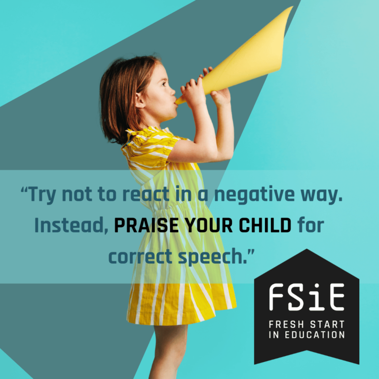 - Try not to react in a negative way. Instead, praise your child for correct speech.